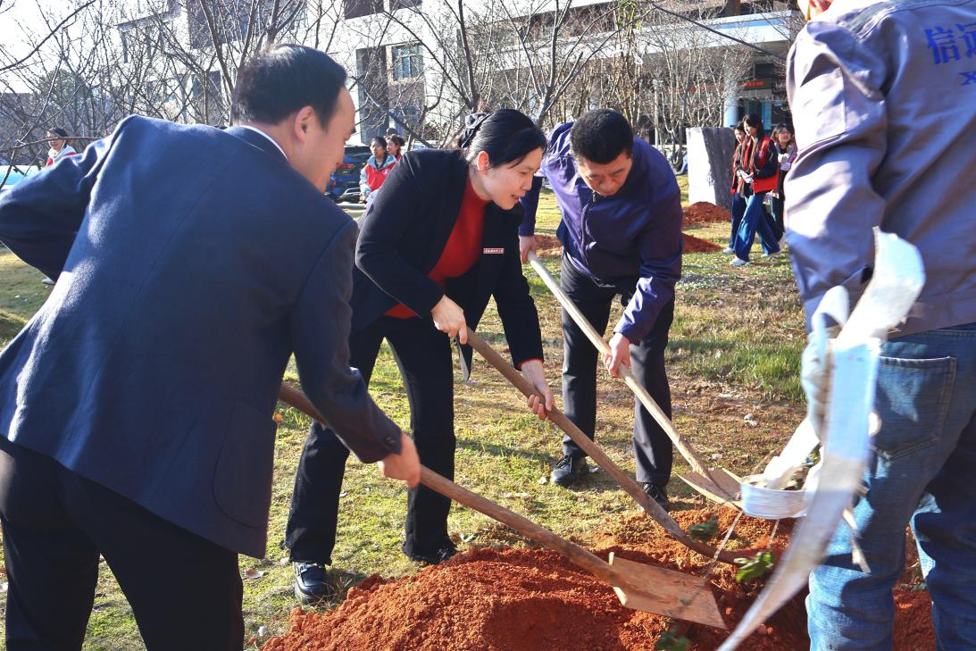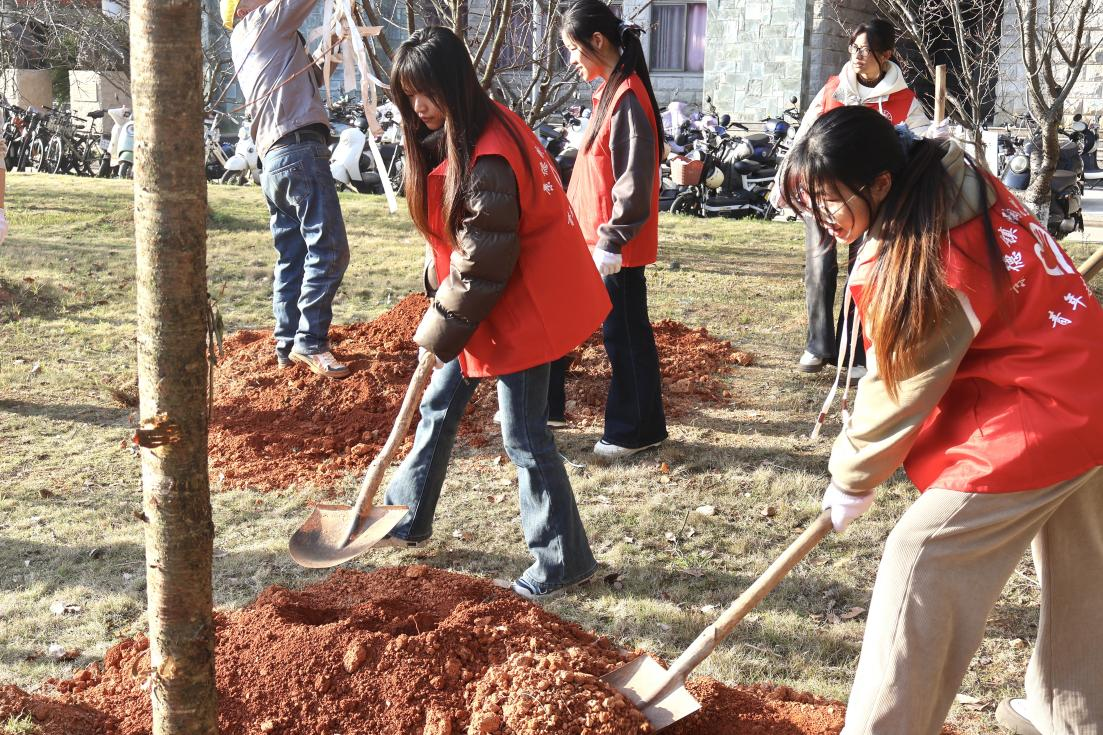 仪式结束后,陈云霞与师生代表一同前往勤学楼前樱花林开展植树活动,以实际行动为美丽校园增添新绿。