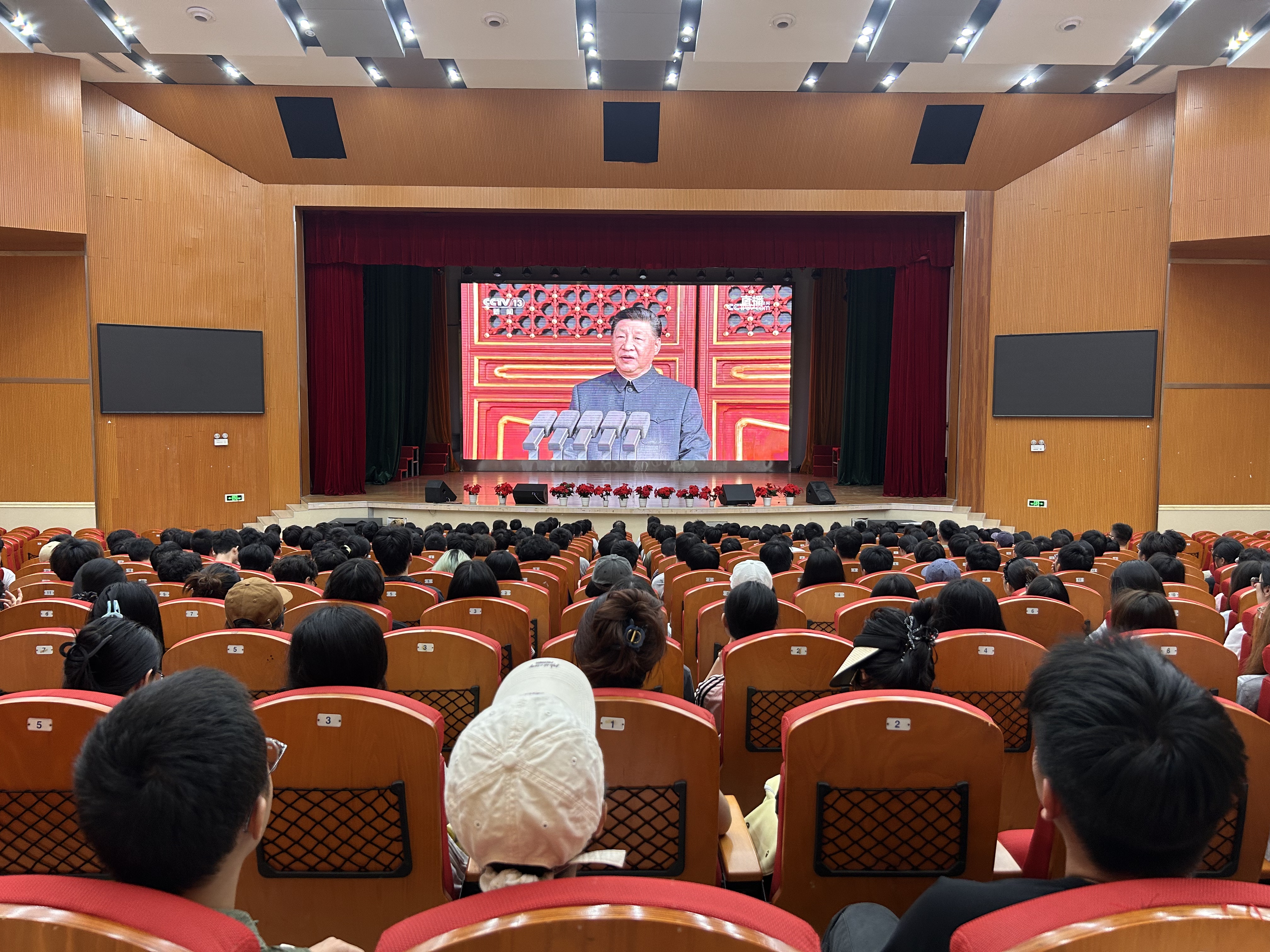 本网讯 9月3日上午,纪念中国人民抗日战争暨世界反法西斯战争胜利80周年大会在北京天安门广场隆重举行。中共中央总书记、国家主席、中央军委主席习近平发表重要讲话并检阅部队。我校师生通过电视、网络等多种形式收看大会盛况。