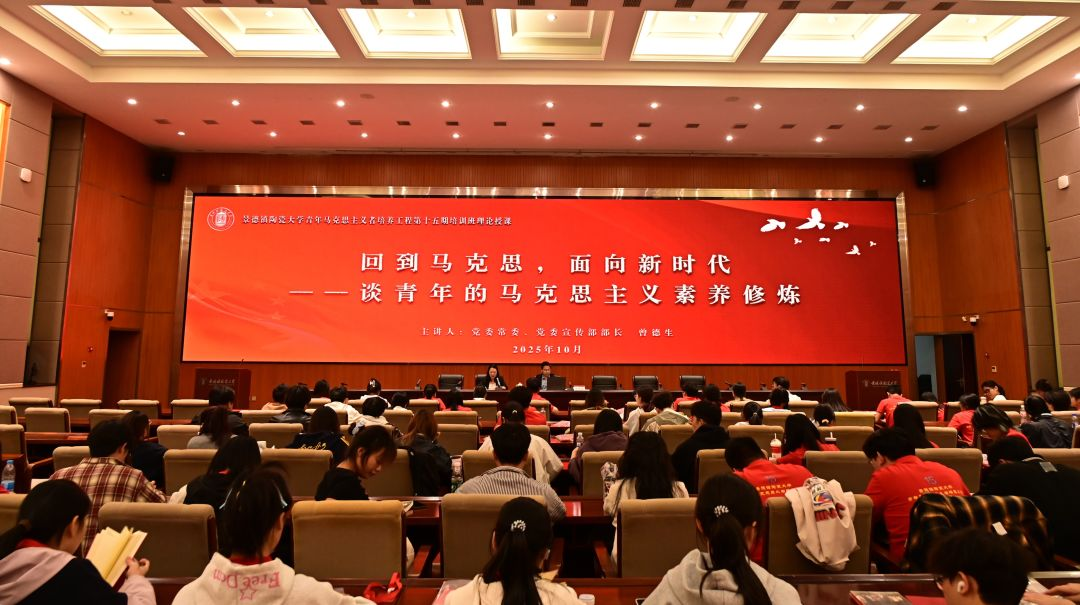 本网讯(黄逸)10月20日晚,我校在湘湖校区国际学术报告厅开展景德镇陶瓷大学青年马克思主义者培养工程第十五期培训班开班第一次授课。校党委常委、党委宣传部部长曾德生以“回到马克思,面向新时代——谈青年的马克思主义素养修炼”为题进行理论授课。全体青马班学员参加学习。